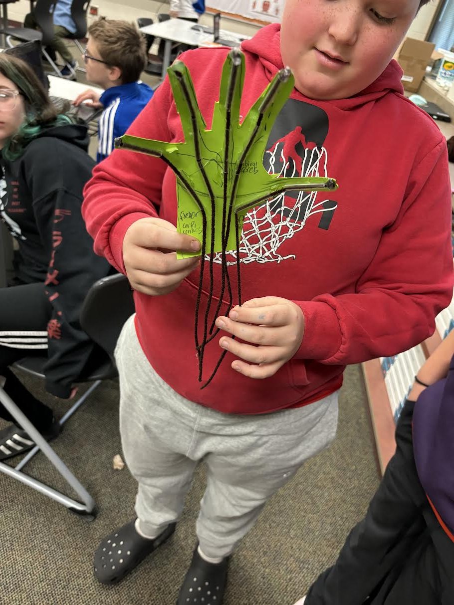This week in Intro to Kinesiology, we learned about the different types of muscles in the body and how they work together to create movement. Our main focus was on the muscles in the hand and how they allow us to perform everyday tasks. To bring this concept to life, students completed a hands-on project where they built a moveable paper hand using paper, straws, and string. By pulling the strings, students could see how muscles and tendons work together to make our hands move!