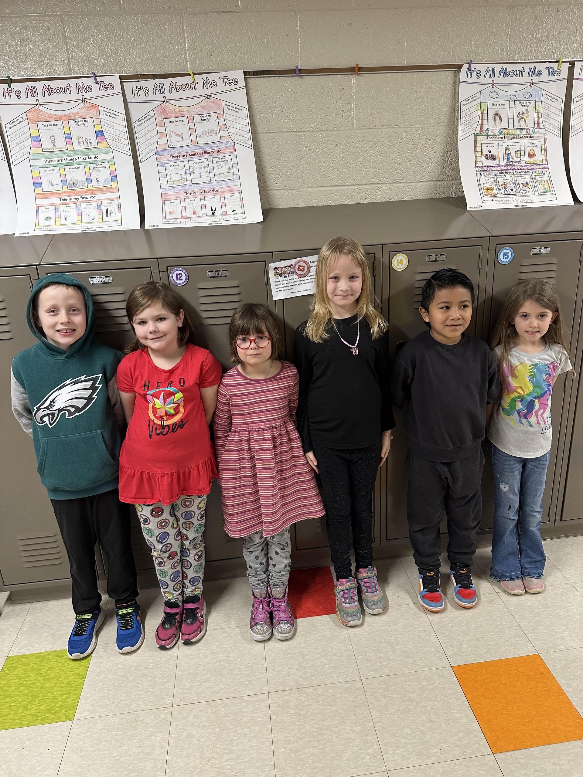 1st Grade: Nolan Bennett, Aria Garrelts, Louisa Hebert, Mia Maynard, Jonathan Denova-Prudencio, and Ryleigh Slaubaugh |